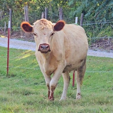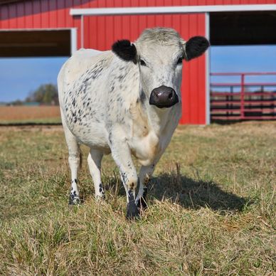 Candy is a gorgeous red-tipped, small frame cow. She is heteropolled, non chondro and non pha. She's registered with the WDCR and has an incredible temperament.