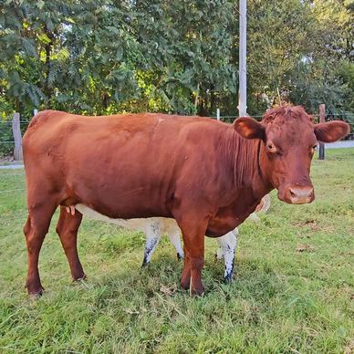 Ruby is a stunning red cow registered with the WDCR. She has the absolute best personality and her temperament is undoubtedly passed on to her calves. Ruby is non chondro, non pha and has been dehorned.